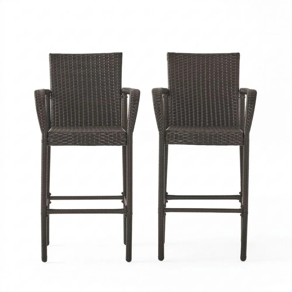 2er-Set Barhocker Polyethylen Rattan Braun, Gesamthöhe 110cm