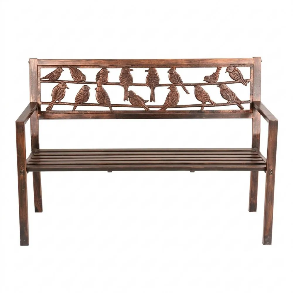 Gusseisen Stahl Gartenbank mit Vögel Lehne Bronze
