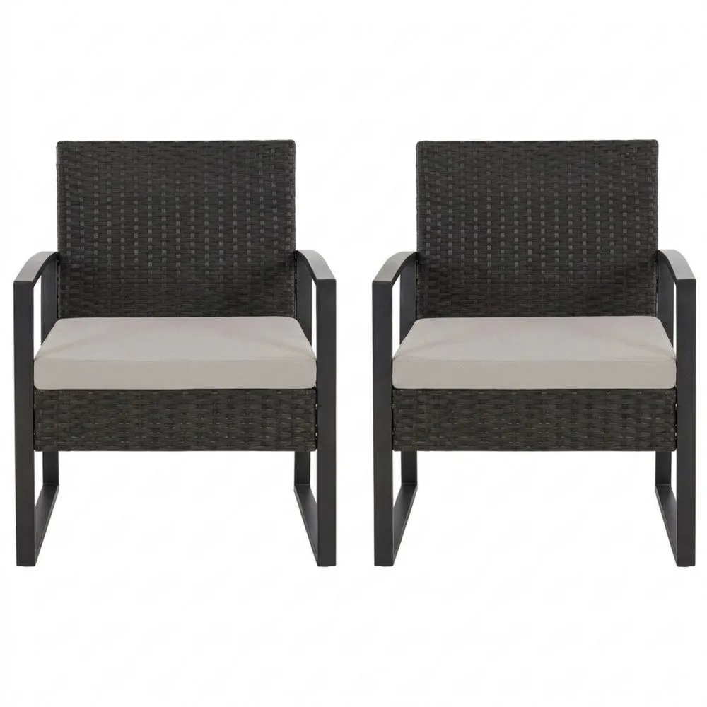 2er Set Gartenstühle aus Polyrattan und Aluminium Grau/Beige
