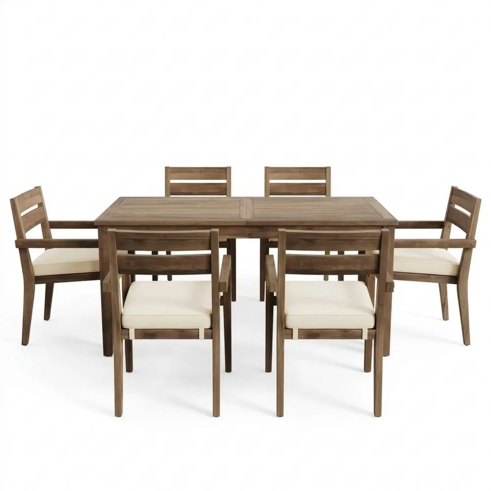 Produktliste: 1 Tisch, 6 Stühle mit Kissen