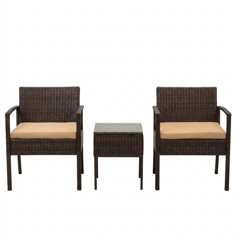 Polyrattan-Freizeitmöbelset mit Kissen und Glastisch in Braun