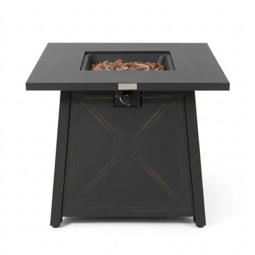 Quadratischer Stahl-Feuertisch in Schwarz mit Propangas, Höhe 76 cm