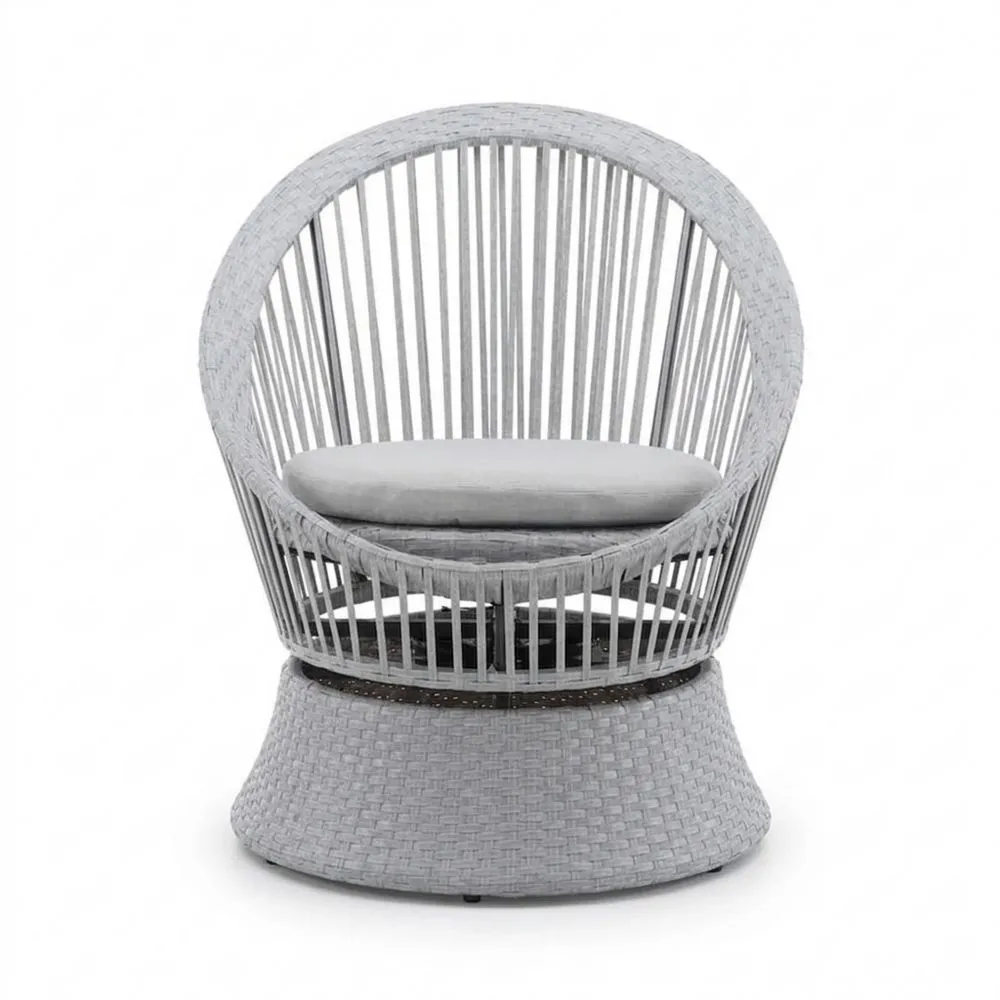 Runder Polyethylen-Gartenstuhl mit grauem Polster